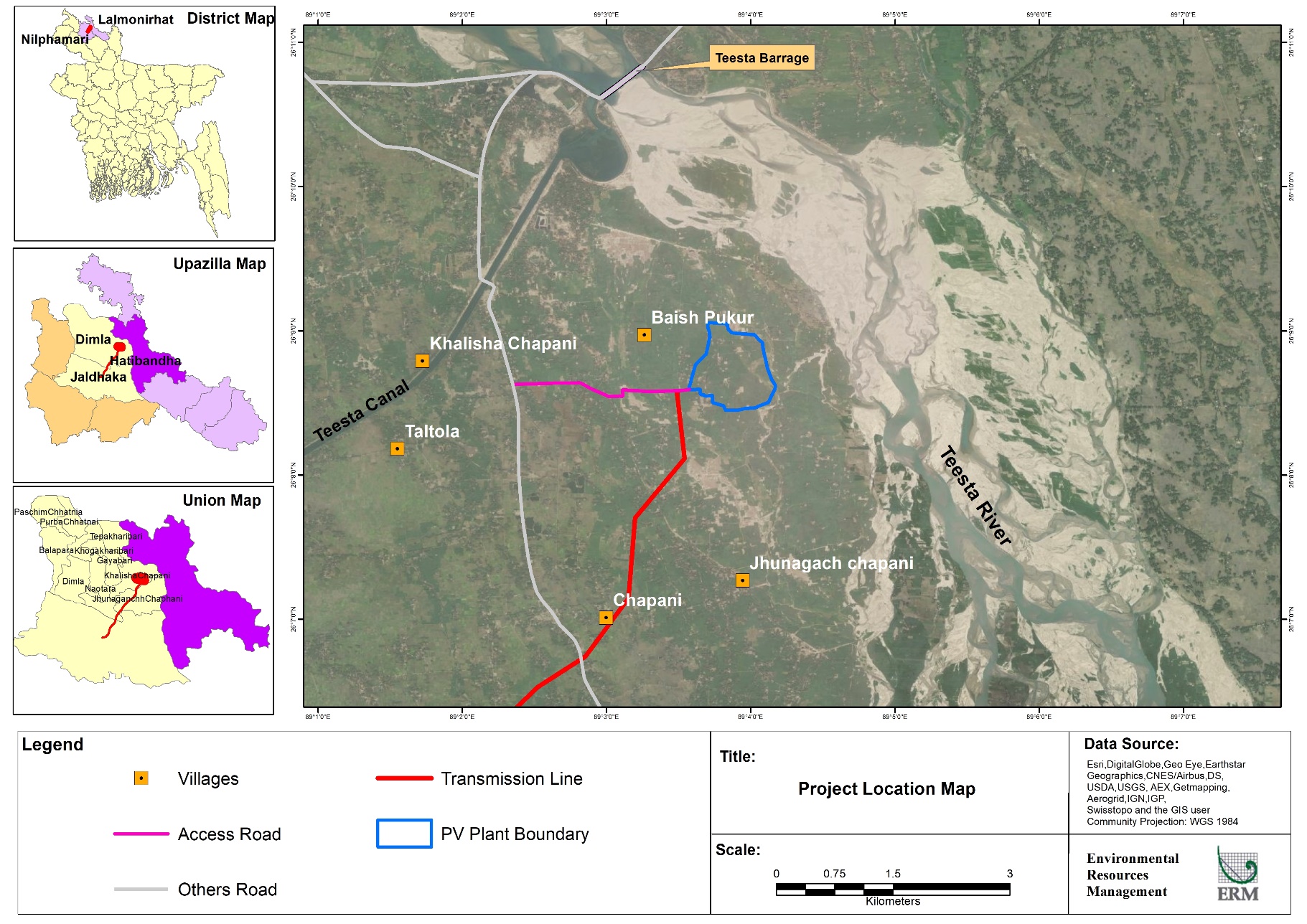 The project is a 50-megawatt (MW) solar photovoltaic (PV) power plant in Nilphamari district, Bangladesh. The project will be developed by Scatec through a SPV named Bangla Sun Solar Energy Limited (BSSE). The proposed project will be located in the village of Baish Pukur, part of the Khalisa Chapani Union Parishad; Upazila (Sub-district) Dimla; District Nilphamari; Rangpur Division of North Bangladesh. The site can be approached through Jaldhaka-Dalia road from the district headquarter Nilphamari.